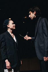 Олег Тополянский: «Это уже второй спектакль курса в жанре театра абсурда. Этим жанром в России мало кто владеет, а у студентов есть возможность пробовать и учиться. Абсурд не звучит как абстракция для современного человека. Он стал общим местом в существовании, но легче спектакль делать нам от этого не стало.