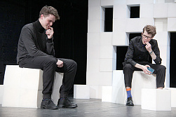 Игорь Золотовицкий: «Мы так редко в последнее время обращаемся к линейной сюжетной драматургии, где можно и нужно персонажу отстаивать что-то важное для него, делиться болью, травмой. Так много сегодня говорят о современном искусстве. Почему оно восстребовано? Кто его на самом деле понимает? Люди спорят, часто не разбираясь в этой тонкой, деликатной материи. Мне бы хотелось, чтобы мои студенты почувствовали эту ноту. Как мы часто не слышим и не хотим слышать, как закостенели в собственных стереотипах и не хотим знать ничего нового. Внутренне, для себя я посвящаю этот спектакль нашей давней работе „Чинзано“ с Романом Козаком в театре-студии „Человек“ — там тоже звучала тема дружбы, которая для мужчин самое важное».